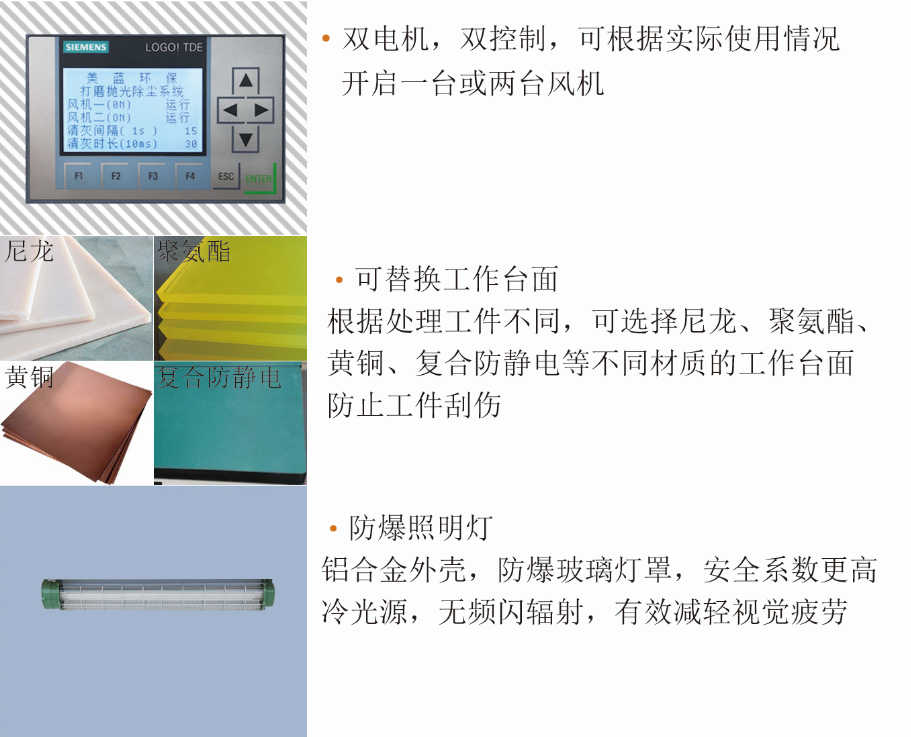 活動(dòng)打磨臺 :適用于小工件,平面工件 打磨拋光雕刻除塵,側吸風(fēng)與臺面下吸風(fēng)相結合。